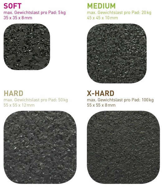 POT-PAD HARD (55 x 55 x 12 mm). Maximale Gewichtslast pro Pad: 50 kg. Packung à 100 Stück.